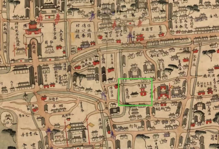 “本次出土发现了五个比较大的磉墩,推测这里曾经有一处面阔五间、进深三间的建筑。因为体量比较大,不像老百姓的房子,应是公共建筑。结合晚清的《宁郡地舆图》和《鄞县通志》里的《鄞县城厢图》,有可能是当时的‘万寿寺’。”
